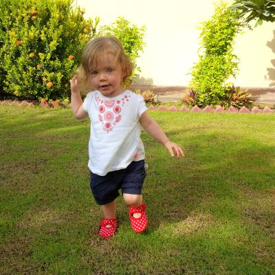 Wir fangen so langsam an, die Vorteile eines Hauses mit Garten zu genießen - und das obwohl es immer noch sehr heiß draußen ist. Aber morgens zum Frühstück (und das findet bei uns dank Leni auch am Wochenende so gegen 8 Uhr statt) kann man es wunderbar draußen aushalten. Und so haben wir letztes Wochenende das erste Mal draußen gefrühstückt. Ok, solche Dinge wie die Butter sollte man schnellst möglich wieder ins Haus bringen, da sie innerhalb von Minuten zerfließt...